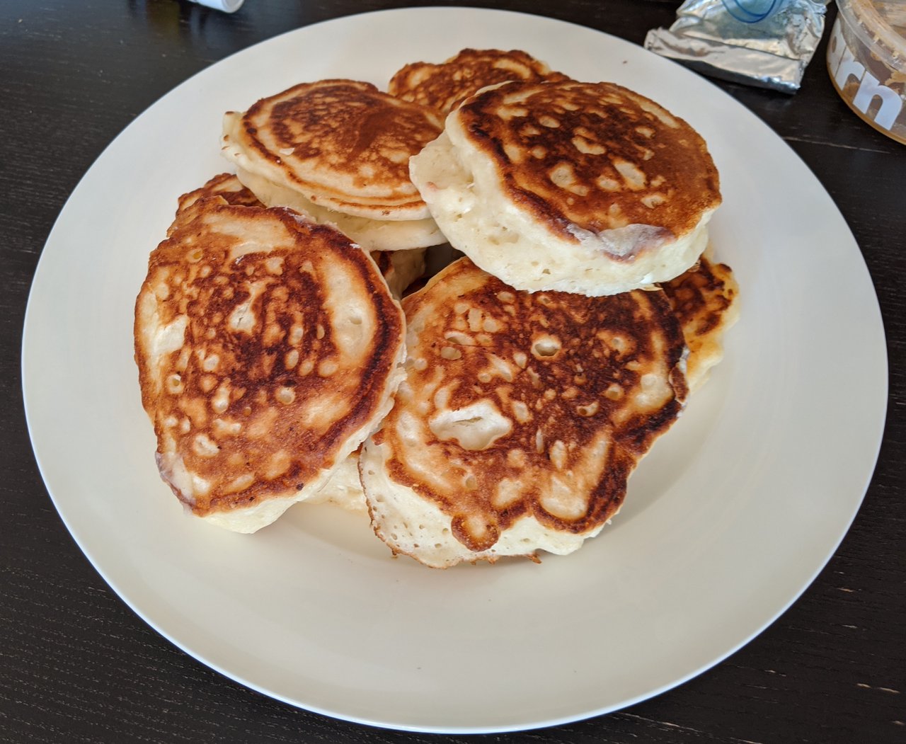 We felt like pancakes that morning and I still had some buttermilk in the fridge. So whipped up my regular recipe, except this time I also added a little bit of Ricotta. I’m very happy how I got the nice browning of the pancakes.