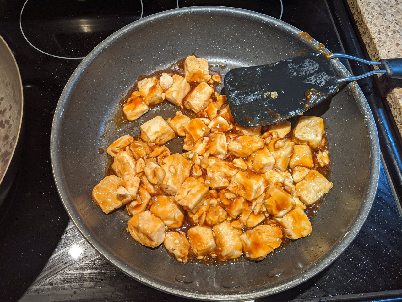 Overall the flavor was not bad, but next time I’d throw in some green onion, garlic, and ginger before adding the sauce, just to give it a more complex flavor.